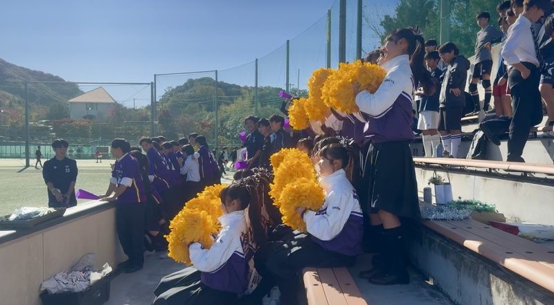 季節外れの照りつける日差しの下、高円宮杯U-18サッカーリーグ2025 兵庫県リーグ プレーオフ 「啓明学院高校A vs 赤穂高校」の試合応援に高3部員のみ参加させて頂きました。